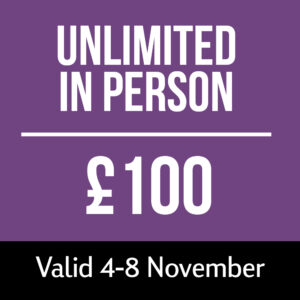 Spend two days soaking up everything that the festival has to offer in-person and then finish off the month by watching the rest of the films online. You will receive access to all screenings and can register for events, Labs, masterclasses and workshops on your selected two days. Then you’ll be able to catch up on films from home via our responsive platform. You can log in on any device – your phone, tablet, computer or TV. The in-person portion of these tickets is valid for two days of your choice, and from 5-30 November online.